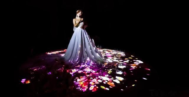 顧名思義,婚紗投影就是在新娘的婚紗上進(jìn)行全息投影,達(dá)到具有動(dòng)態(tài)美的“百變新娘”效果,是全息宴會(huì)廳最受觀眾喜愛的部分。新娘只需要穿上婚紗站在投影區(qū)域即可。